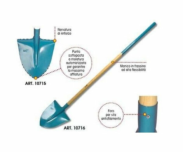• Il manico del badile è realizzato in legno frassino ad alta flessibilità