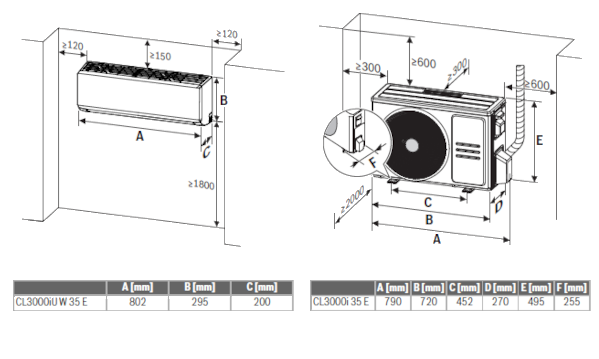 Dati tecnici dell'unità esterna CL3000i 35 E: