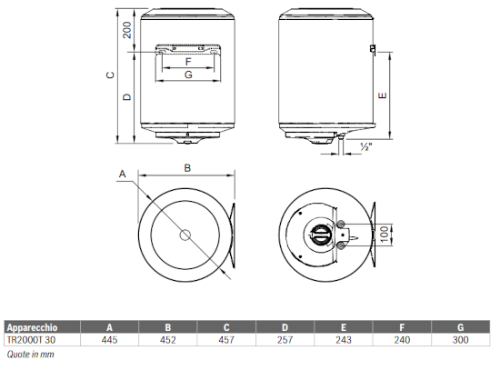 Caratteristiche scaldabagno elettrico Tronic 2000T: