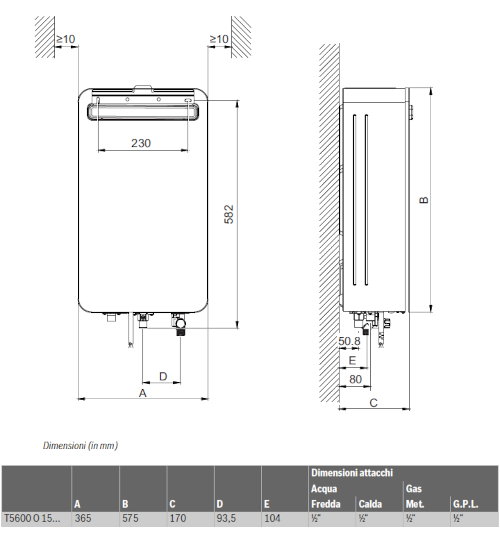 Caratteristiche scaldabagno a gas da esterno T5600 O 15 V23: