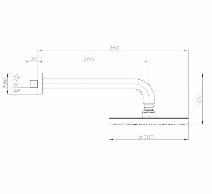 - Braccio doccia: Ø 28 x 300 mm, 1/2”MM
