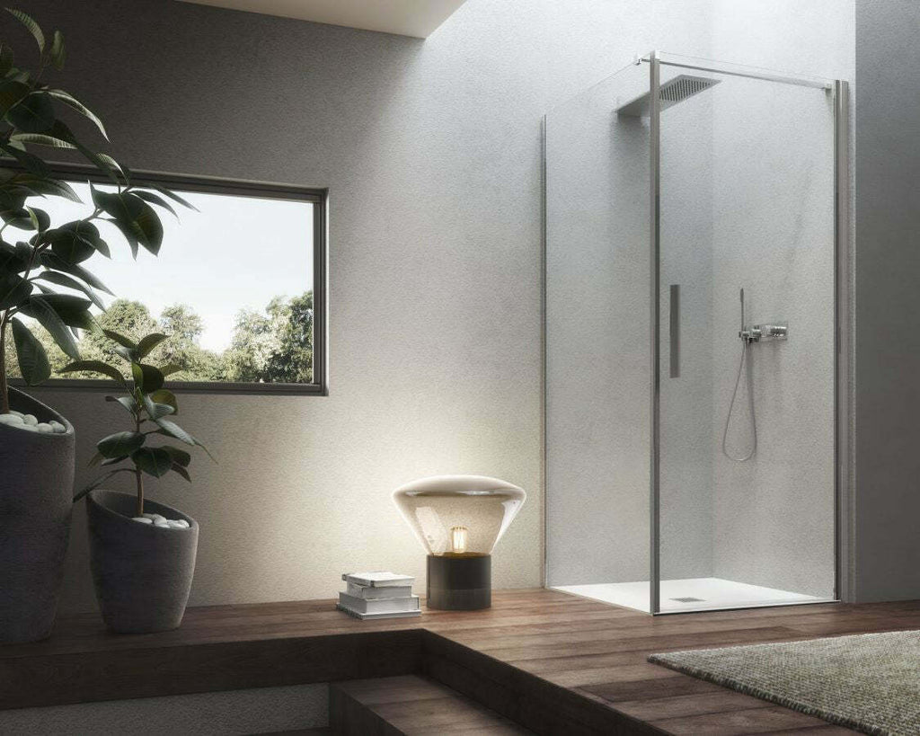 I vetri, con spessore 8 mm e altezza 2,05 m, possono essere trasparenti o satinati fino a soddisfare le richieste più stravaganti e moderne del bronzo e fumè. Il tutto abbinando i profili desiderati come Extrabrill, effetto acciaio inox spazzolato, bianco o nero materico, oppure richiedendo espressamente la nuance preferita.
