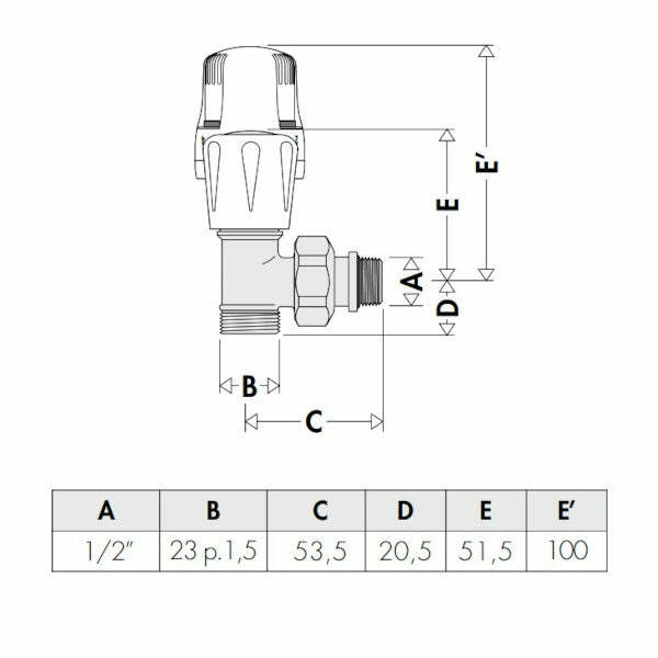 - Attacco al radiatore 1/2” M con codolo fornito di guarnizione di tenuta in EPDM