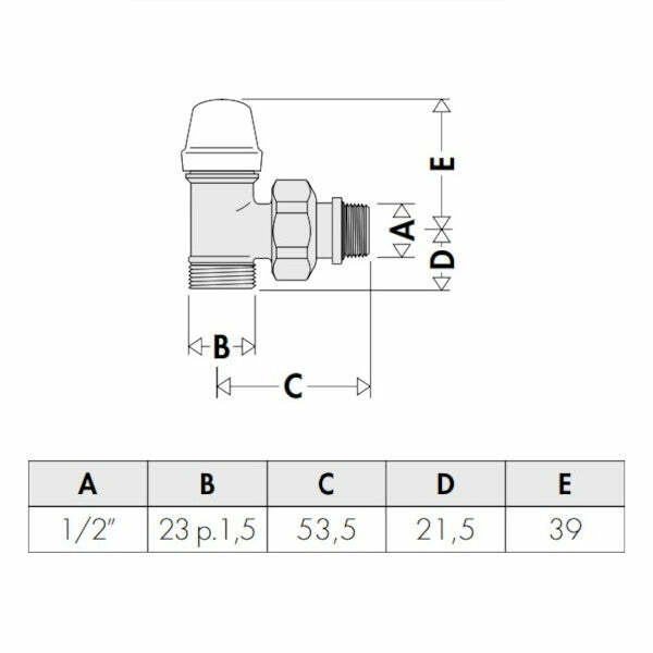 Caratteristiche Caleffi 342 detentore a squadra per radiatore: