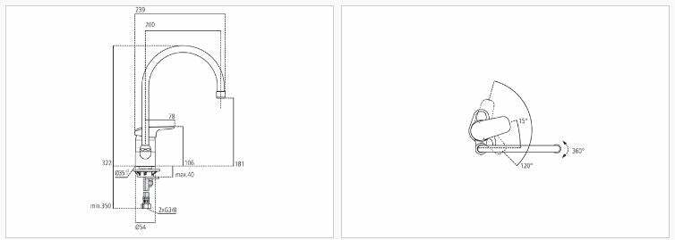 Miscelatore monocomando lavello con bocca alta tubolare orientabile.