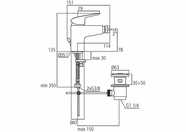 - Miscelatore monocomando bidet con bocca di erogazione fissa