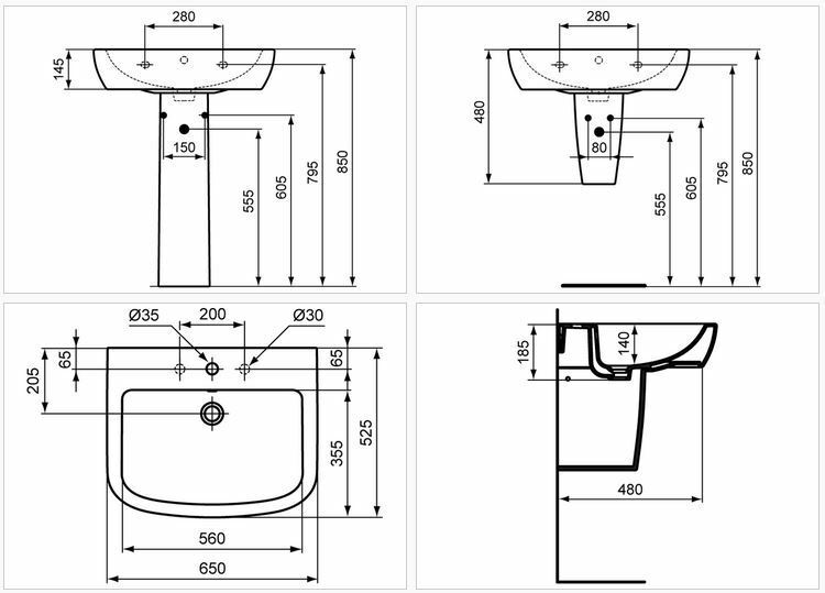 - Dimensioni del lavabo: 65 x 52,5 cm