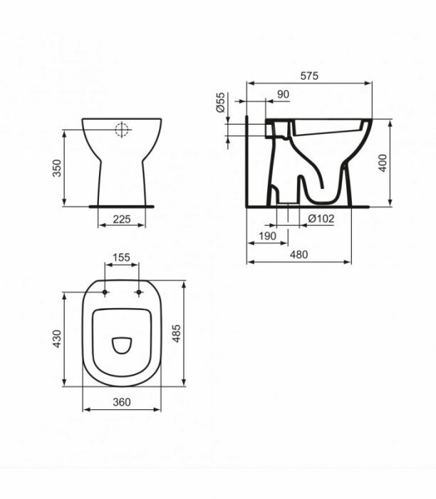 Ideal Standard TONIC II K317301 vaso a terra con sedile slim soft close