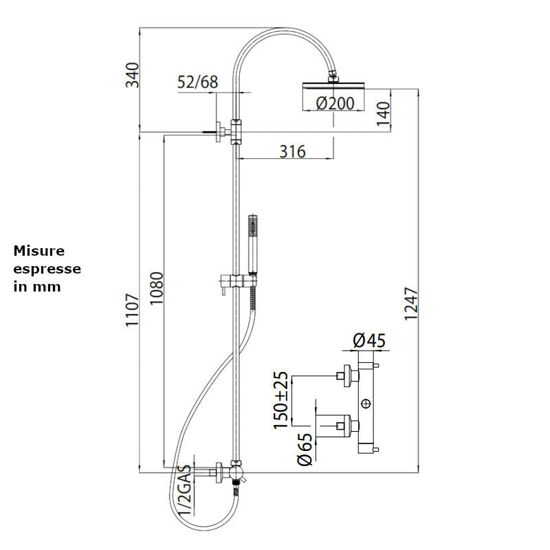 - 1 x Miscelatore Termostatico esterno con deviatore incorporato