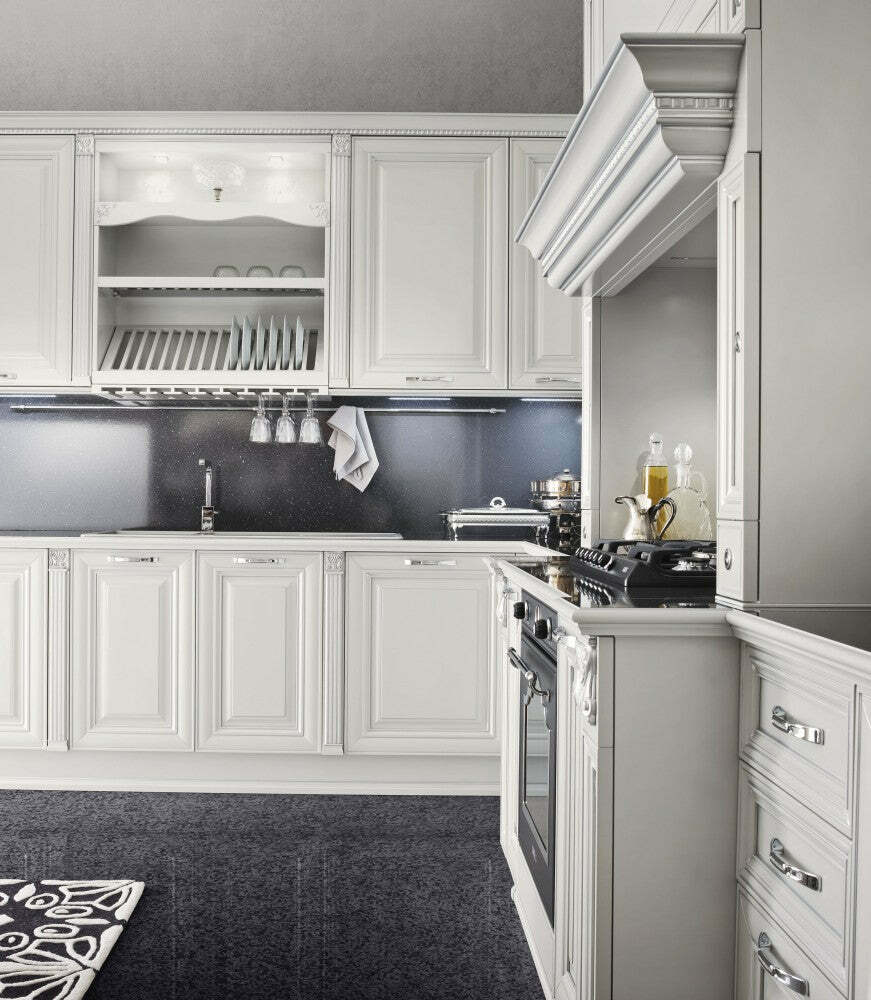 La cucina Ginevra saprà soddisfare ogni tipologia di stile grazie alle diverse tipologie di materiale ed alla loro combinazione. Ecco allora che ad identificare e rendere unica la cucina vi sono finiture studiate nei minimi dettagli: champagne, cashmere, grigio luce, grigio perla, bianco anticato oro e ghiaccio anticato argento. In particolare, ciò che maggiormente fa tendenza è la maestria di Ar-Tre nell'accostare il vetro trasparente con l'inglesina al laccato, così da creare un ottimo connubio tra classicità e modernità.