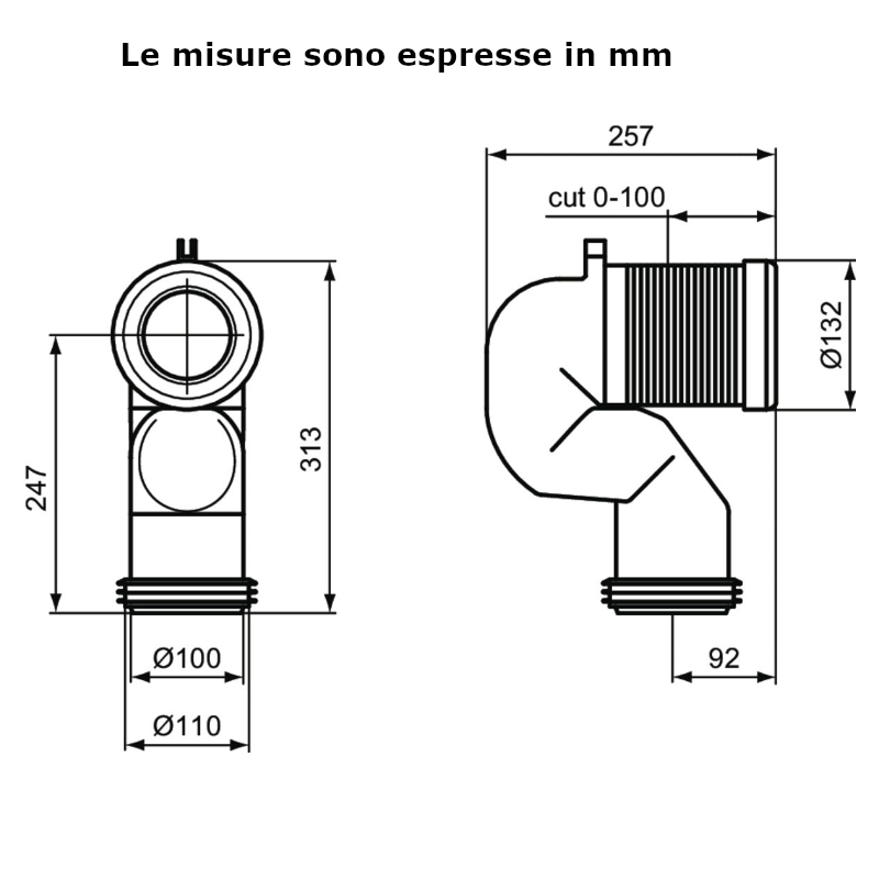 •  MULTISUITE T002667 è un curva tecnica per conversione scarico vaso Tonic II da parete a pavimento