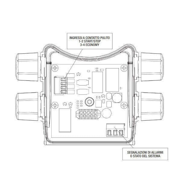 - Funzione EXT: se attivato da pannello di controllo sarà possibile comandare l’accensione e lo spegnimento della pompa da remoto