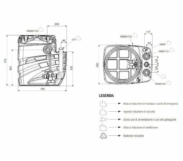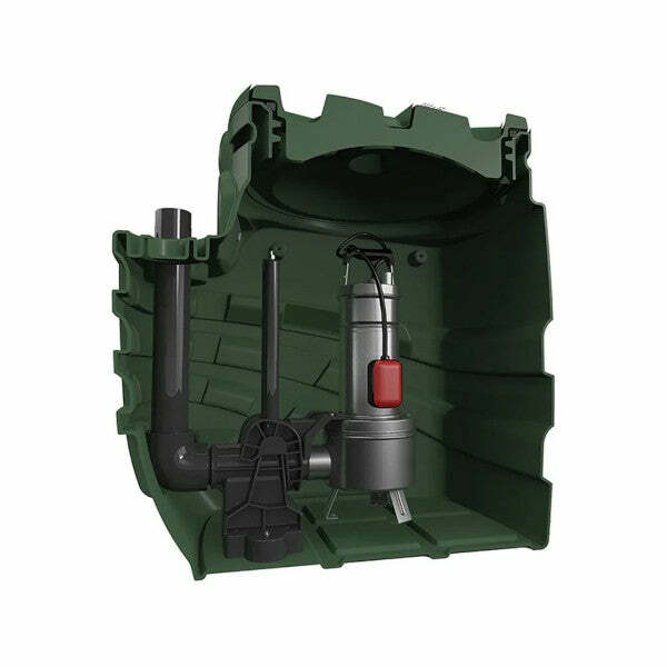 - Stazione di pompaggio idonea per la raccolta e il rilancio in fognatura di acque di scarico domestiche (reflue, grigie e piovane), di seminterrati o garage per una o più unità abitativa, quando la rete fognaria non può essere raggiunta per gravità