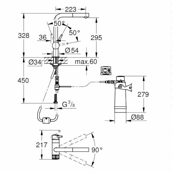 • GROHE Blue miscelatore monocomando per lavello con sistema filtrante dell’acqua