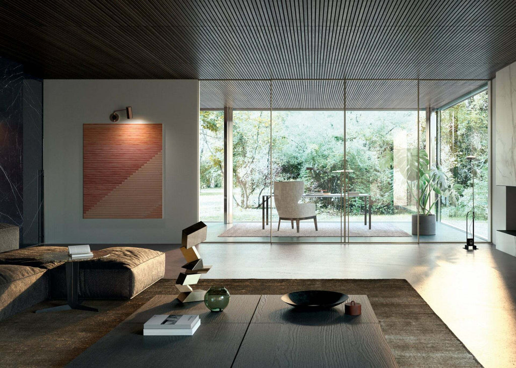 Grazie alla sistemazione di vetrate fisse al pavimento, si creano divisioni interne creando ambienti contemporanei, personalizzando a proprio piacimento. Un progetto unico a tutti gli effetti, che abbinandogli porte a battente o a bilico, formano composizioni lineari o più dinamiche in base alle richieste del cliente.