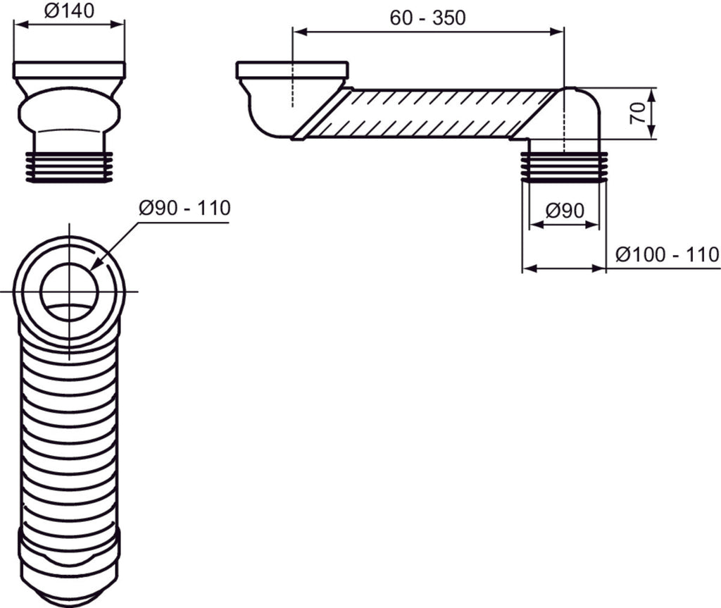 Ideal Standard T538667 Curva tecnica per scarico a pavimento 130-320 mm