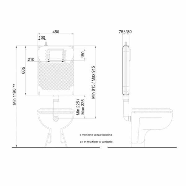• Cassetta da incasso, per sanitari WC a pavimento, sospesi o alla turca, per tutti i tipi di installazione dalla muratura al cartongesso