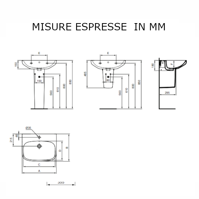 • L'altezza del lavabo è di 150 mm