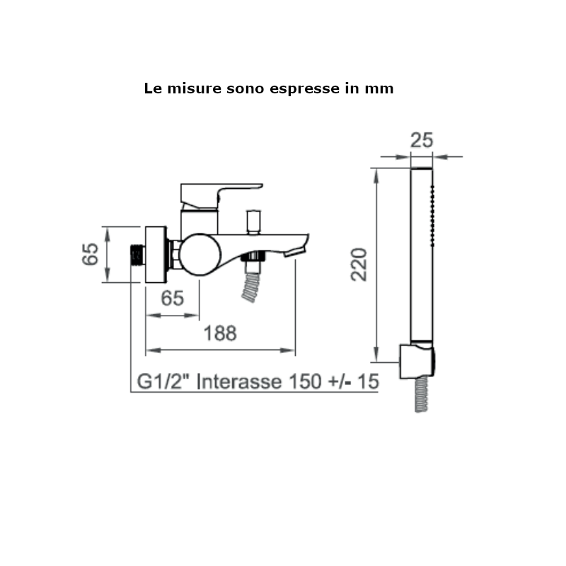 Miscelatore vasca/doccia esterno Gio' B0622AA con doccetta e flessibile