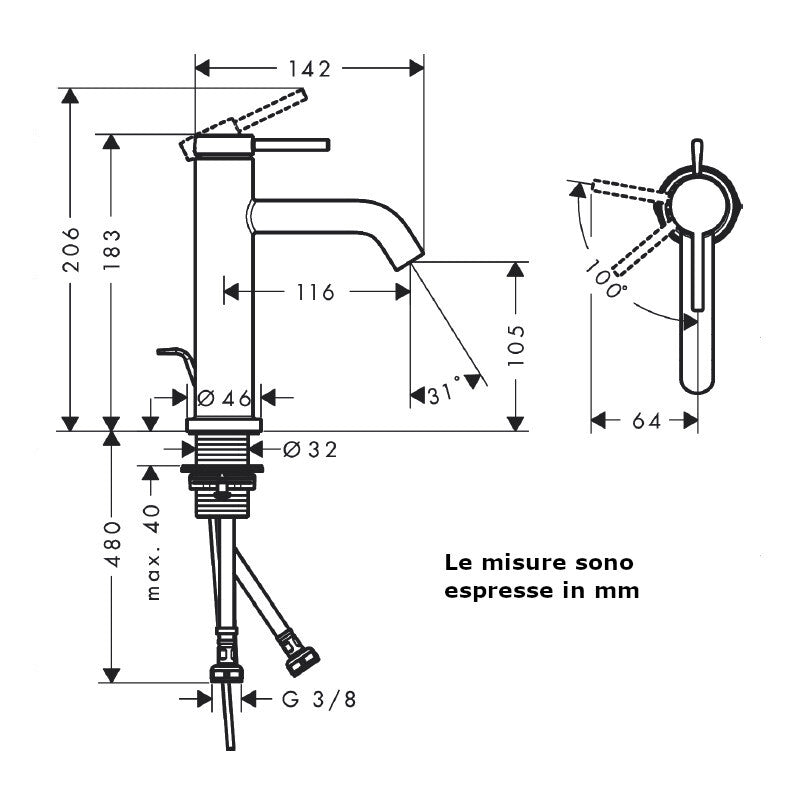 Dati tecnici del miscelatore lavabo: