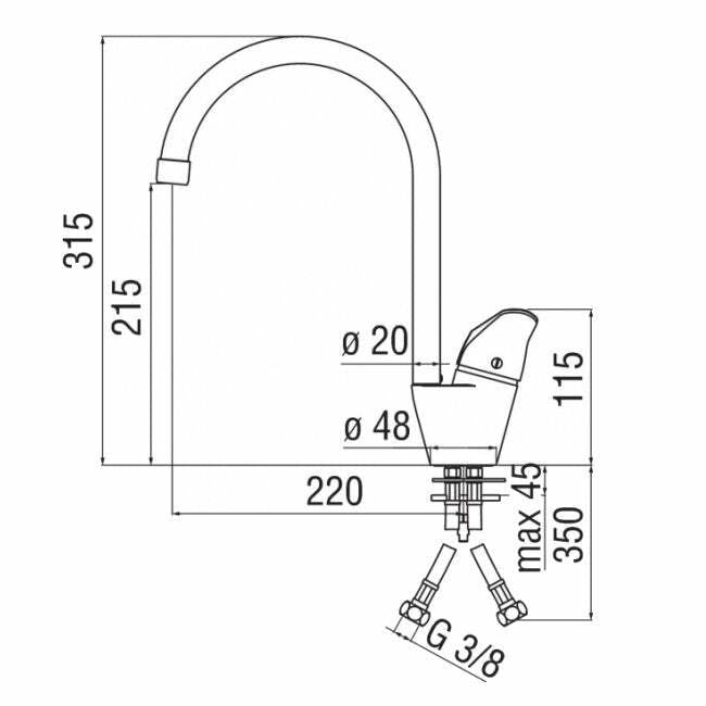 Paffoni Green miscelatore lavello con canna tubo cromo