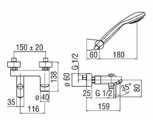 Miscelatore vasca/doccia esterno Gio' B0622AA con doccetta e flessibile