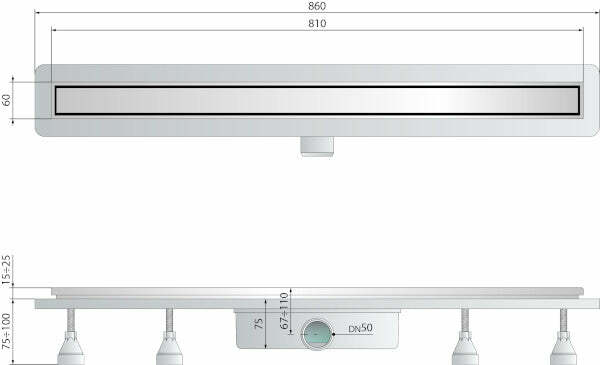 OMP Nanoflow canalina per doccia a pavimento 800 mm x DN50