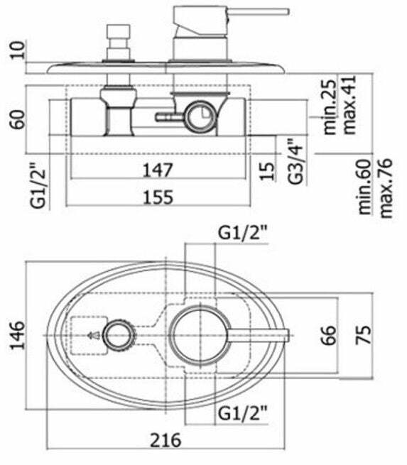 - 1/2"G caldo/freddo e attacchi superiori - attacco inferiore 3/4"G -