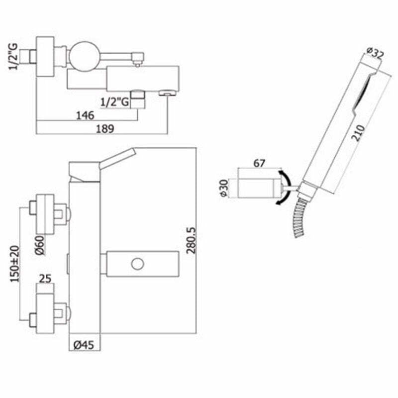 Miscelatore vasca/doccia esterno Gio' B0622AA con doccetta e flessibile