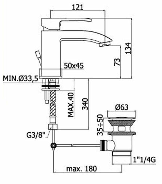 • Completo di flessibili inox 3/8”G di collegamento e piletta di scarico 1"1/4 con saltarello