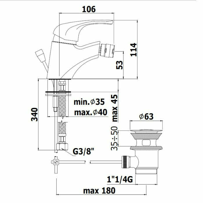 • Miscelatore bidet con scarico automatico
