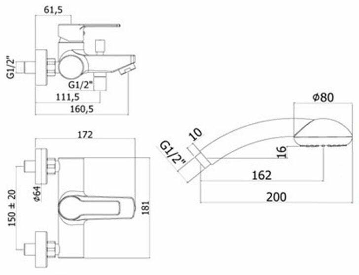 Miscelatore vasca/doccia esterno Gio' B0622AA con doccetta e flessibile