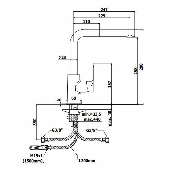 - Caratteristiche: miscelatore lavello con doccetta estraibile (monogetto) in ABS