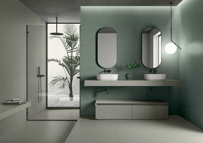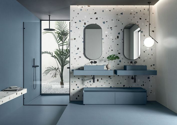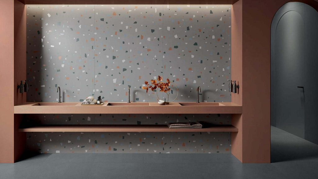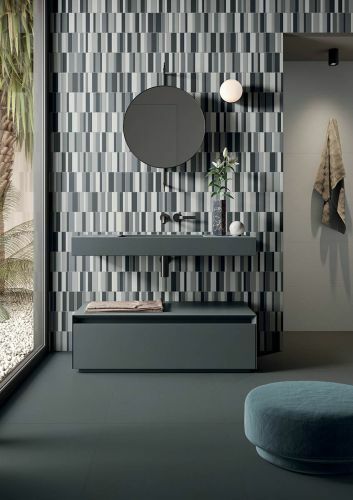 I colori naturali, che rispondono ai nuovi canoni estetici dell’interior design, si arricchiscono di frammenti policromi, delicatamente riflettenti e pienamente integrati nella materia.