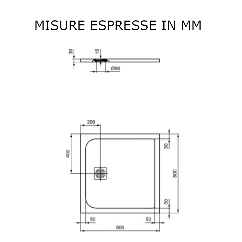 • Il piatto doccia è realizzato in Ideal Solidmateriale altamente resistente composto da una miscela di minerali naturali e resine
