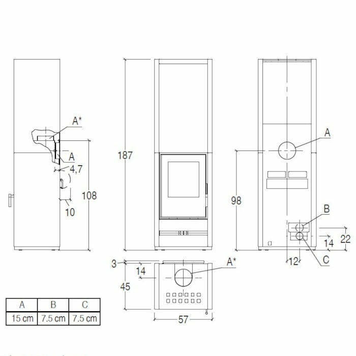 - Scarico fumi di serie Ø cm: 15