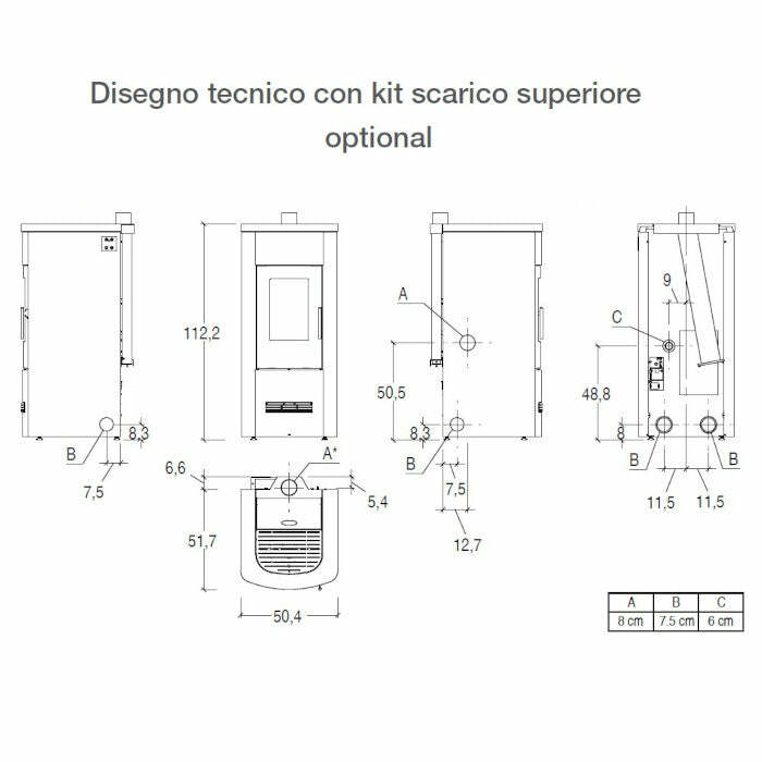 Piazzetta P230 T TOP stufa a pellet 11 kW scarico superiore