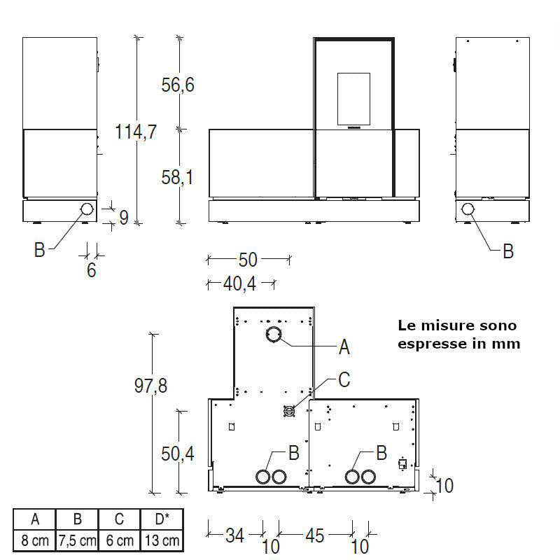 Piazzetta P230 C W/B TOP stufa a pellet 11 kW scarico superiore e basamento