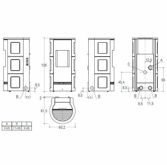 - Porta / Maniglia: ghisa con vetro ceramico resistente a 750°C / apribile con manofredda