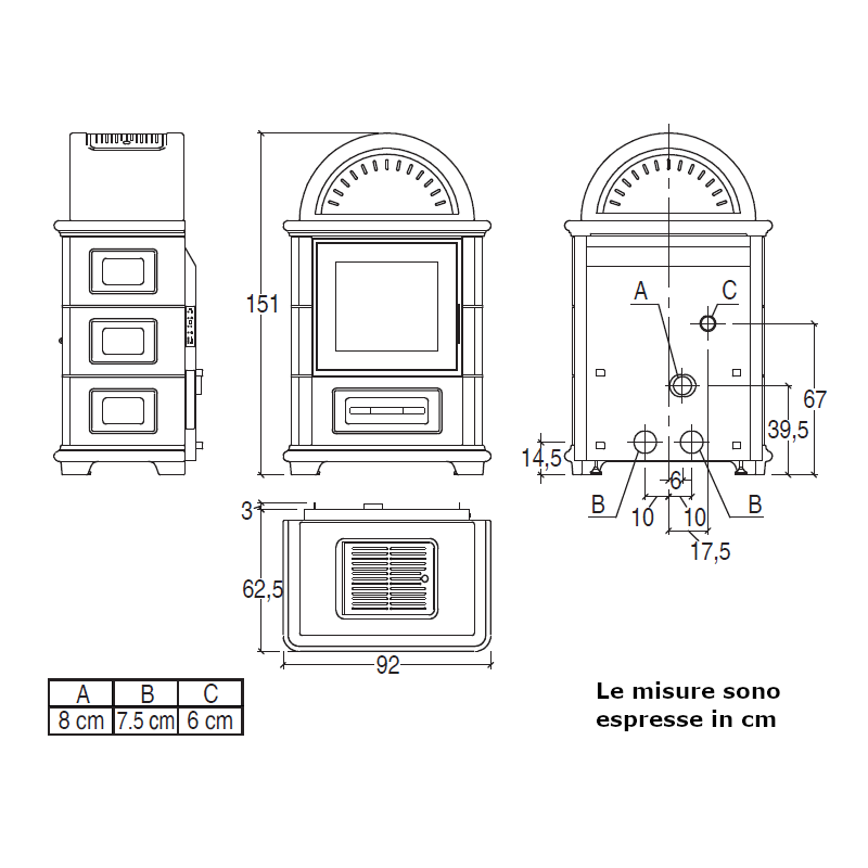 - Scarico fumi di serie Ø: 8 cm