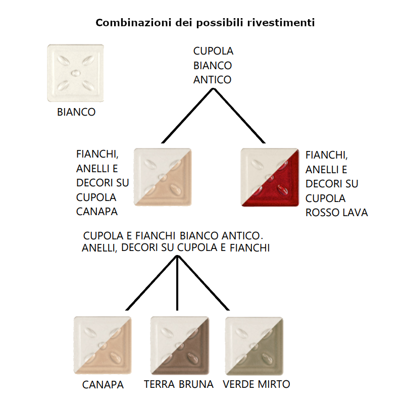- Cupola e fianchi Bianco Antico con anelli, decori su cupola e fianchi Terra Bruna;