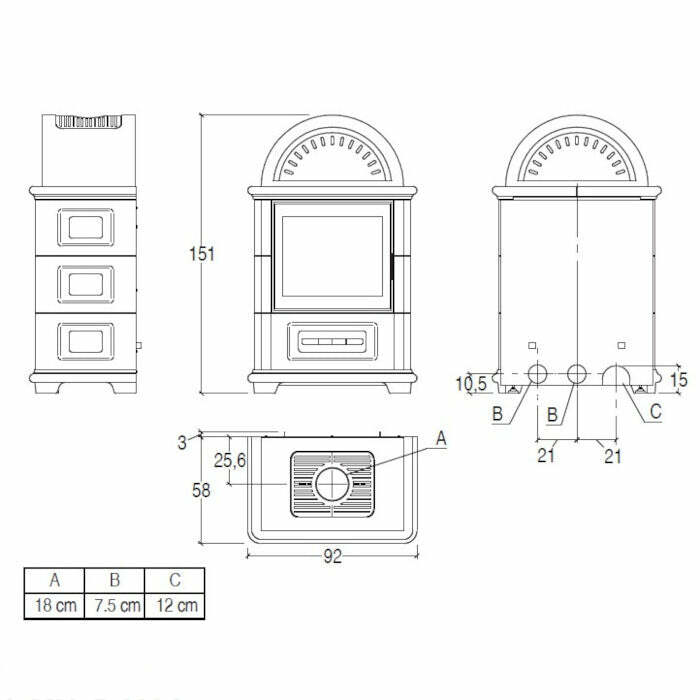 Piazzetta STUBOTTO C è lo stubotto a legna, caratterizzato dal focolare in Aluker®, il quale migliora la combustione e la diffusione del calore, e dalla bocchetta frontale.