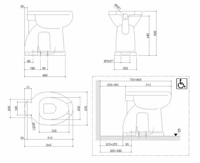 Dati tecnici vaso sanitario: