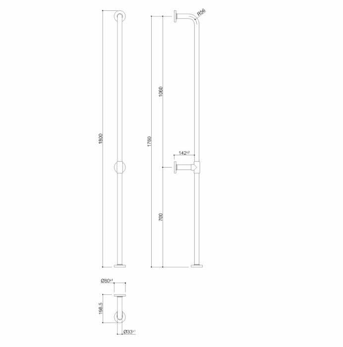 - Maniglione verticale da parete a pavimento