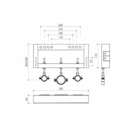 • Interasse fori fissaggio sanitario: 130/180/230/280 mm