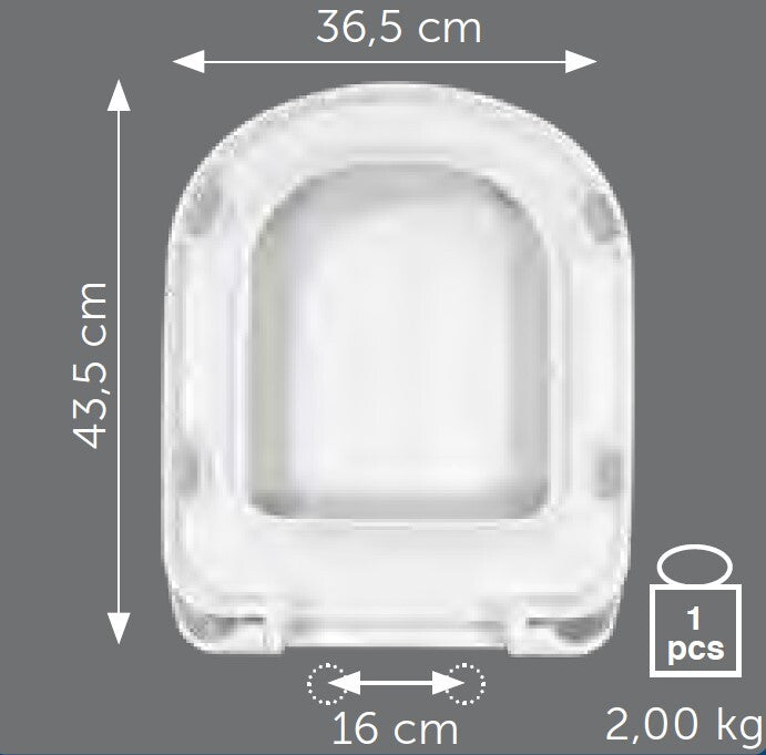 • La lunghezza del sedile compatibile è idonea per vasi con lunghezza di 43,5 cm
