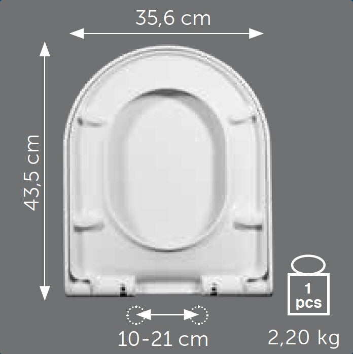 • La lunghezza del sedile compatibile è idonea per vasi con lunghezza di 43,5 cm