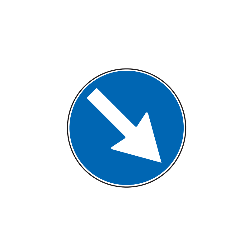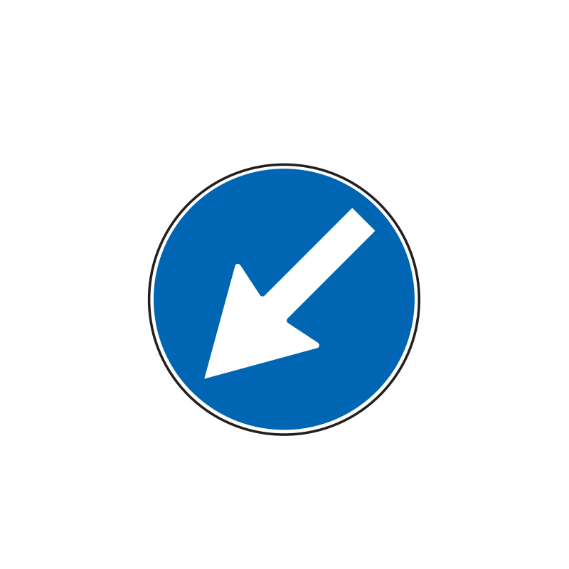 • Indica, ai conducenti, l'obbligo di passare a sinistra o a destra di un cantiere stradale o di un ostacolo, un salvagente, uno spartitraffico, ecc...