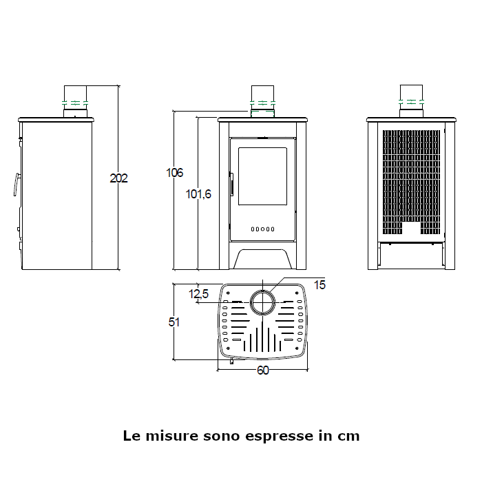 - Scarico fumi di serie Ø: 15 cm